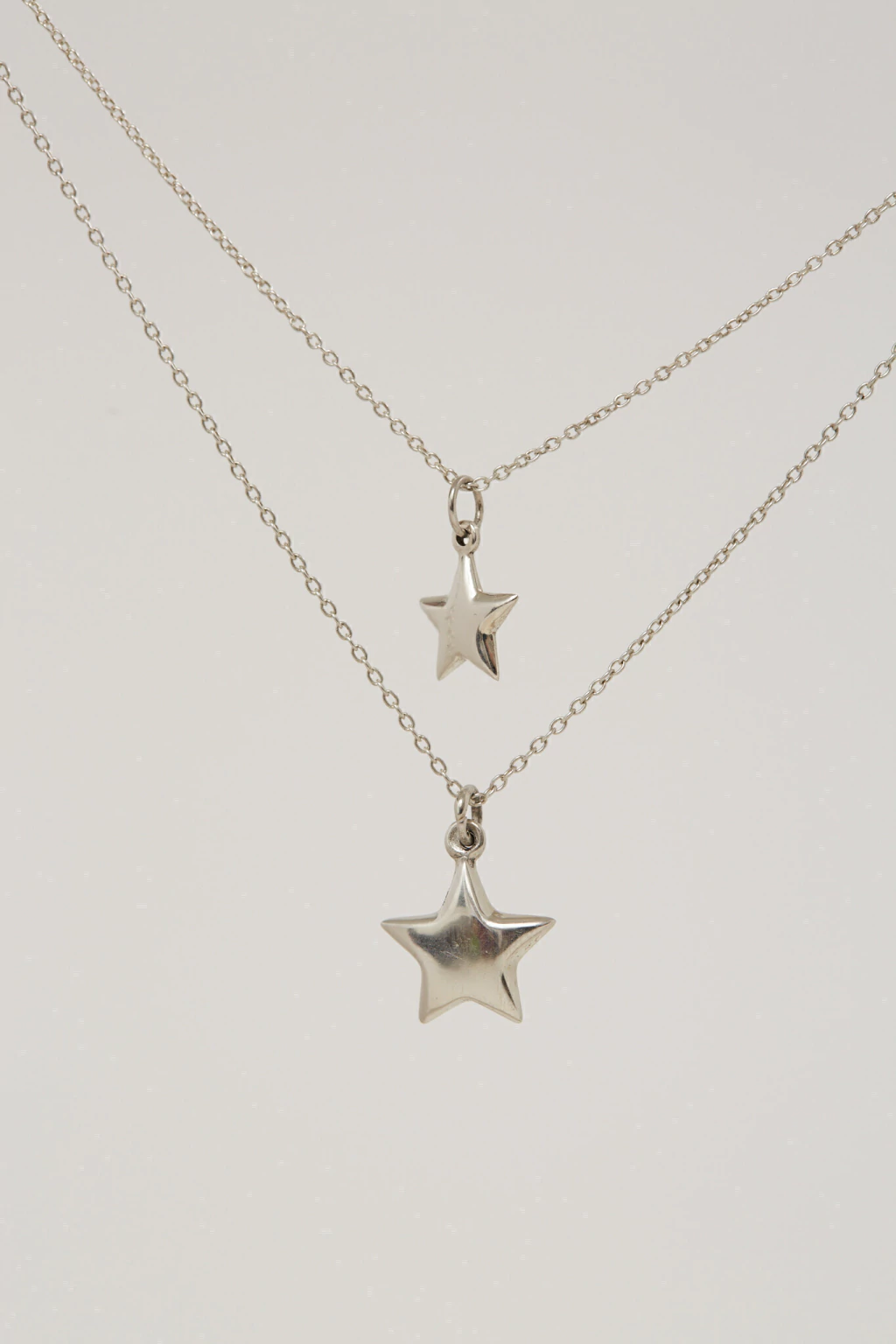 La cadena mide 45cm de largo. La estrella grande mide 1,5cm y la pequeña 1cm aproximadamente.