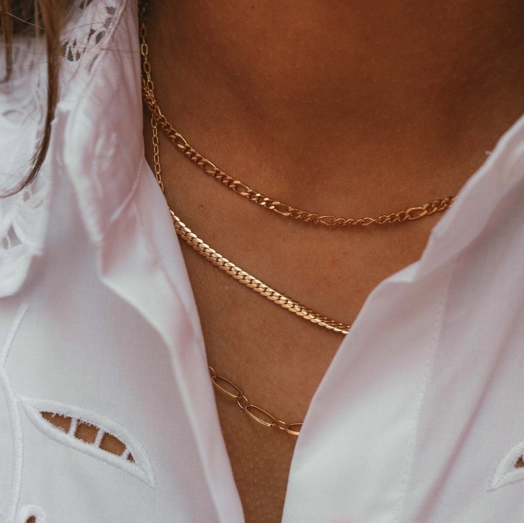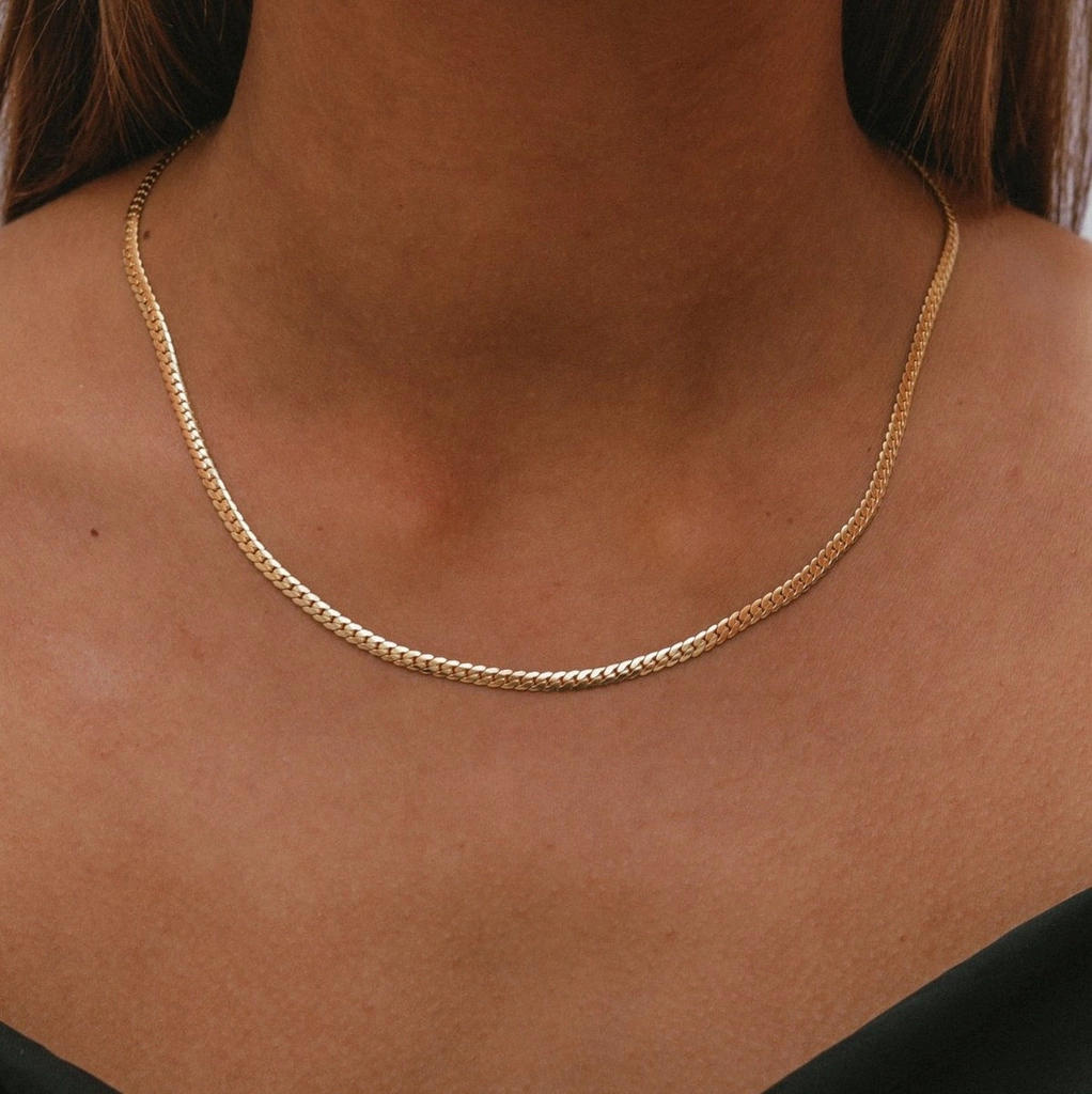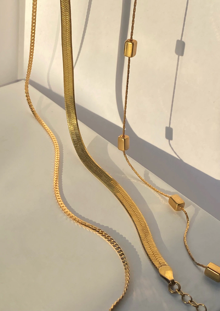 Cadena chata tejida de 45cm de largo.