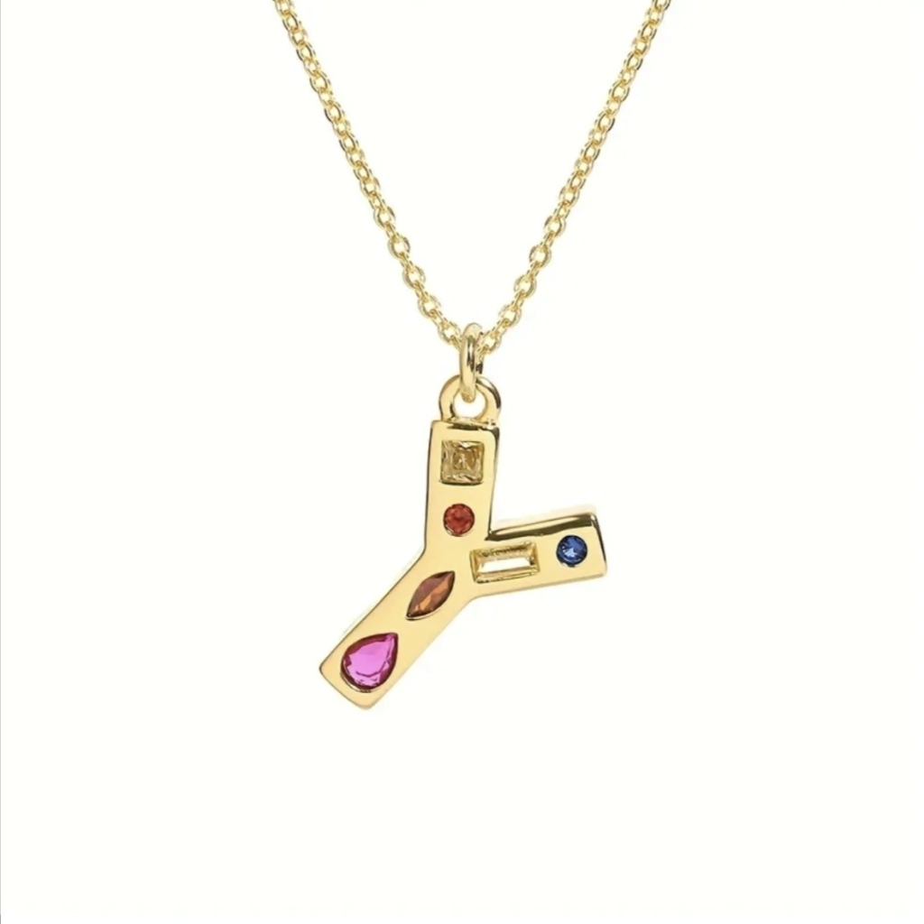 Collar Mosaic Dije de acero con cristales circonio de colores. Miden 2cm de largo y 1,5cm de ancho aproximadamente. La cadena es mide 45cm y es regulable con 4cm más de extensor. Largo total 49cm.