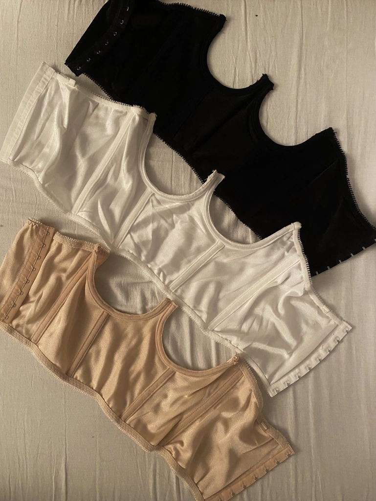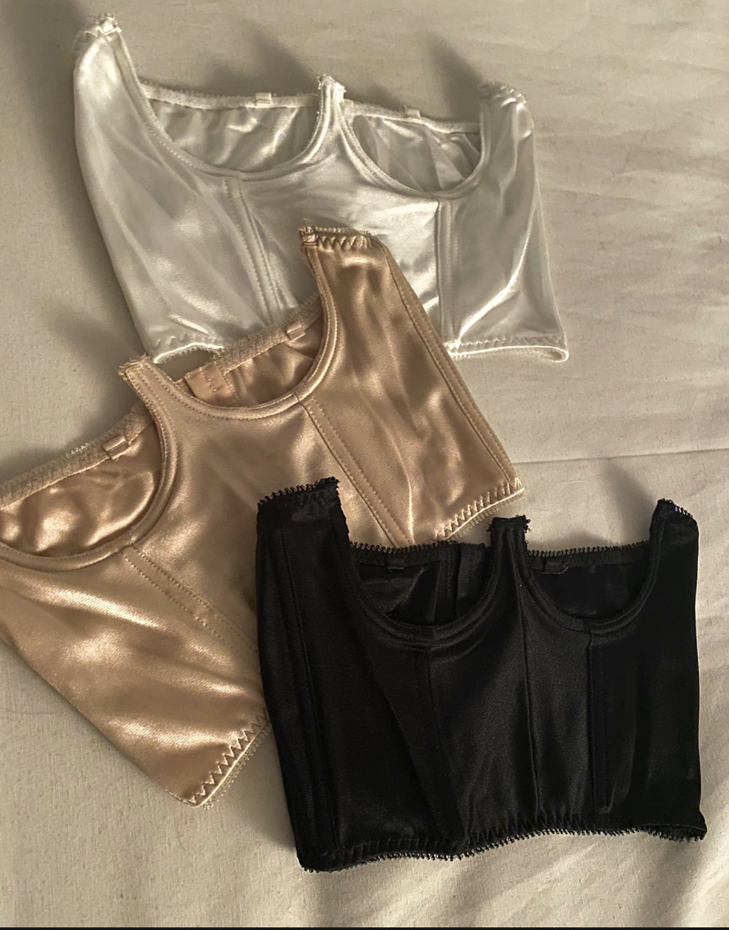 Corset BALCONETTE Talle unico. Contorno total elastizado de Lycrasaten de 60cm, estira hasta 80cm aproximadamente. 20cm de alto total, breteles removibles. Cierre metálico de corsetería. 2 ballenas incorporadas y aro de metal.